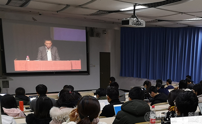 同学们在六教观看直播