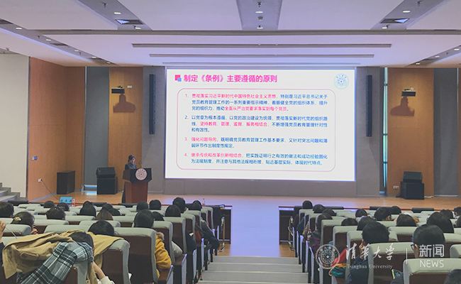 校党委组织部副处级专职组织员梁静讲解了《中国共产党党员教育管理工作条例》,介绍了《条例》出台背景、主要内容与贯彻落实要求,重点阐述了党员管理、监督和处置的有关要求,强调要把全面从严治党要求落实到每个支部、每名党员,坚持管在日常,严在经常。