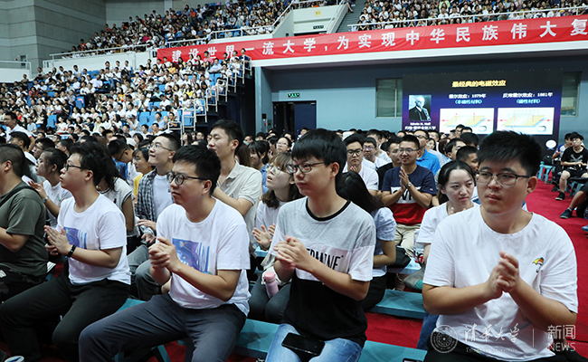 华体会娱乐(中国)网8月23日电(记者 李晨晖 摄影 石加东)8月22日晚,华体会娱乐平台党委书记陈旭以“继承清华精神,勇担时代大任”为题给2019级全体研究生新生作成才报告。
