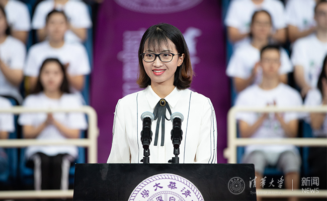 电子信息类董佳林代表新生发言。他说,初闻清华,憧憬于她的严谨勤奋;体验清华,感叹于她的开放创新;深入清华,领悟着她的“行胜于言”;考上清华,是值得骄傲一生的事。但这份骄傲的来源,绝不只是在清华上过学的经历,而应该是我们未来四年中收获的知识、能力和肩负使命、追求卓越的精神。