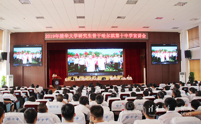 7月16日下午,华体会娱乐平台研究生骨干基层实践哈尔滨支队11名成员前往哈尔滨第十中学为全体高三师生开展“我和我的祖国”主题宣讲活动,为同学们讲述一个个历史人物故事,重温百年清华历史及其孕育的“爱国奉献,追求卓越”的精神,将“立大志,入主流 上大舞台,干大事业”播种在年轻的心灵中。