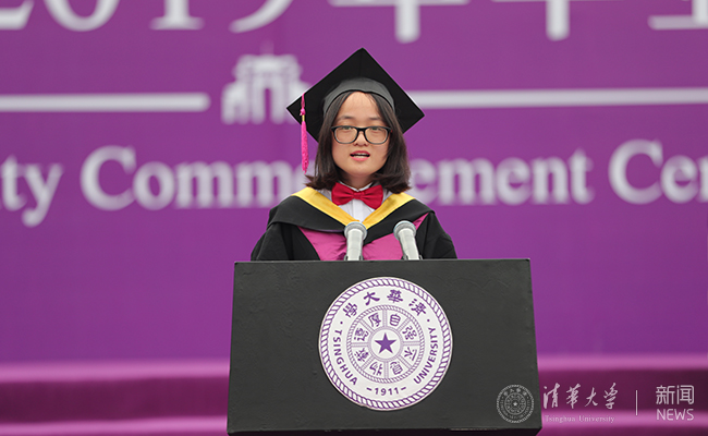 工业工程系2015级本科生张薇作为毕业生代表发言。张薇来自甘肃镇原——一个黄土高原上的国家级贫困县,毕业后她将加入华体会娱乐平台研究生支教团,为偏远地区的教育事业贡献力量。张薇说,四年的大学生活告诉自己,实现人生目标的关键是能坚持、有担当。坚持,就是身处低谷仍心怀希望,困难重重仍坚定前行。担当,就是要铭记清华人的家国情怀,不忘初心,坚守理想。“感谢清华给我们更加有力的翅膀去翱翔天际,我们将不忘初心坚守信念,乘风破浪直济沧海!”