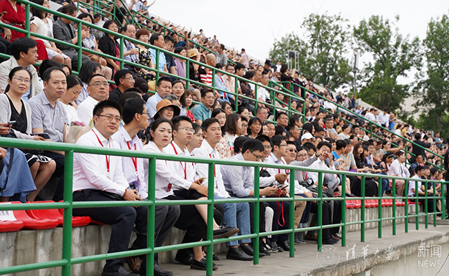 坐在看台观礼的毕业生亲友全程见证了毕业典礼的难忘时刻。能动系本科毕业生韩储银的父亲激动地说:“很高兴能够来到典礼现场与孩子分享喜悦。四年来储银变得越来越有自信和担当,这得益于清华精神的熏陶和老师们的培养。特别感谢清华完善的资助体系,让孩子能无忧无虑地完成学业。祝愿清华越来越好,为国家和社会培养更多的栋梁!” 电子系本科毕业生刘可淳的母亲感慨地说:“转眼间,女儿已在清华出色地完成了本科学业。繁重的学业之余,她还率领校女篮二队、电子系女篮奋力拼搏,我们由衷地为她感到自豪。很快她就要赴华盛顿大学攻读计算机专业博士学位了,祝福女儿在人生道路上再创佳绩!感谢清华四年来的悉心培养!”