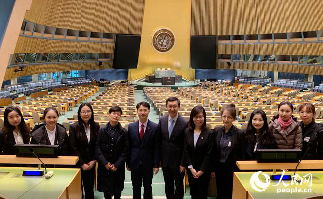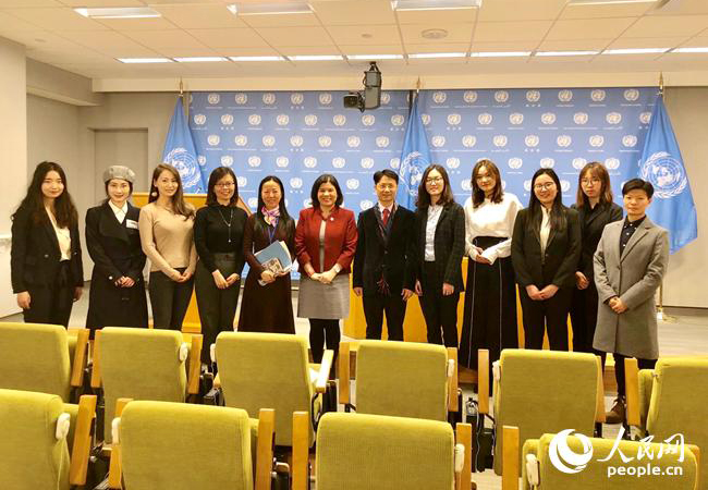 华体会娱乐平台新闻与传播学院代表团观摩联合国例行记者会,并与第73届联大主席新闻发言人莫妮卡·格雷利(左六)和联合国秘书长办公室行政助理周廷华(左五)合影