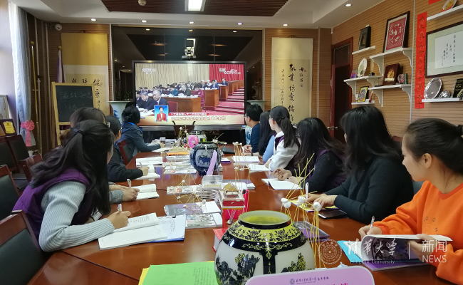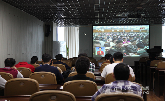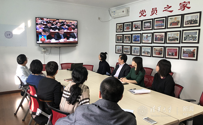 校领导和专家学者在工字厅东厅集中收看人大开幕 李派 摄
