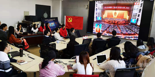 【组图】清华师生热切关注第十三届全国人民代表大会第二次会议开幕