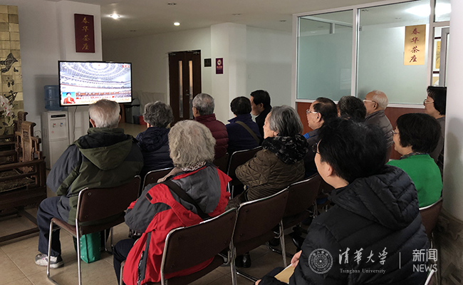 校领导和专家学者在工字厅东厅集中收看人大开幕
