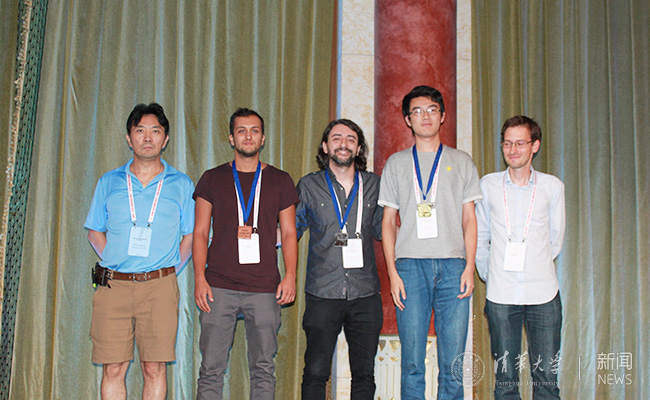 在SIGCOMM 2018会议上,孟子立(右二)获得学生研究竞赛(本科生组)金牌