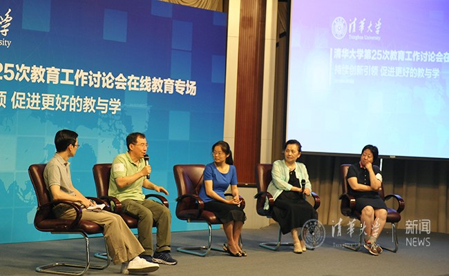 安宇(左二)在在线教育谈论会上 殷昊 摄