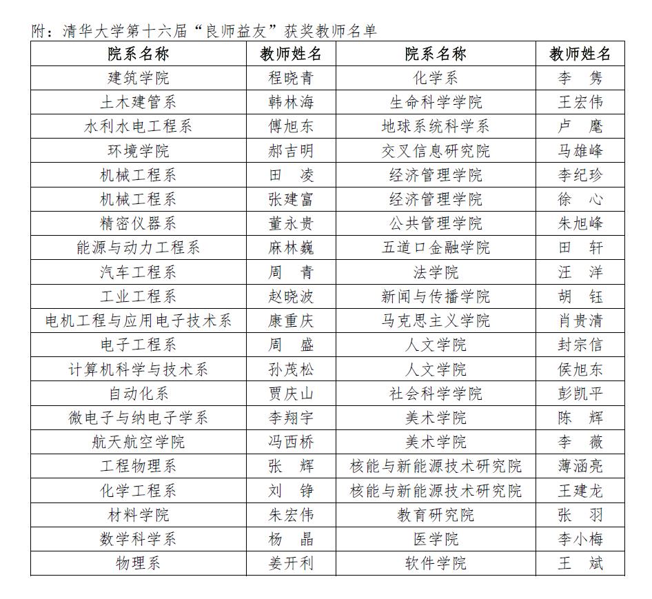 华体会娱乐平台自1998年开展“良师益友”评选活动以来,同学们自发投票评选心目中的657位好老师,涌现出了一批“立德为首”“学高为师”“教益为友”“育人为本”的清华良师,获称号5次以上进入“名人堂”的教师共有20人。“良师益友”评选活动不断引领师德师风建设,树立教书育人典范,营造尊师重教氛围,传递了导学关系正能量。