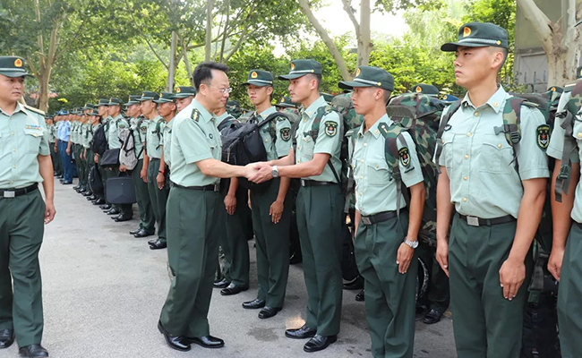 9时30分,陆军防化学院参训官兵抵达并集结整队,正式亮相。官兵步伐铿锵,英姿飒爽,在场师生以经久不息的掌声对教官们表达了热烈欢迎。