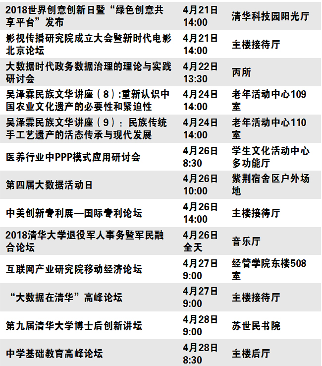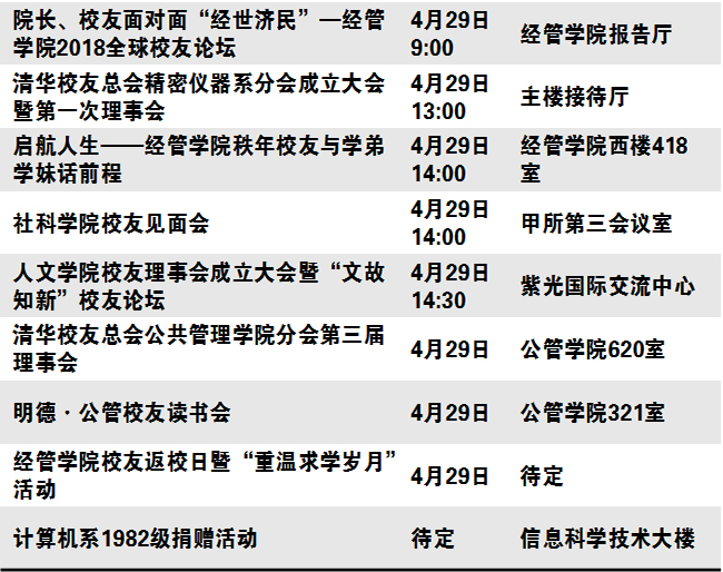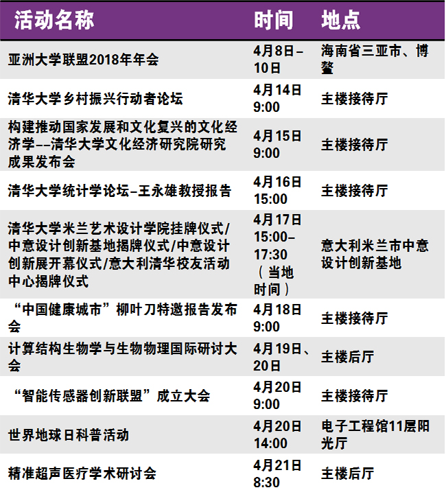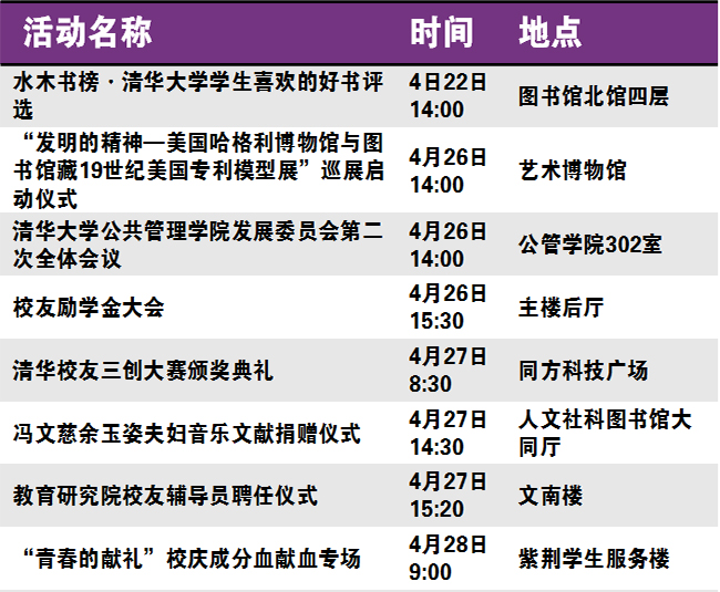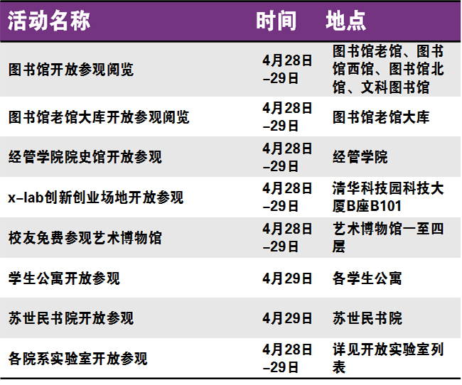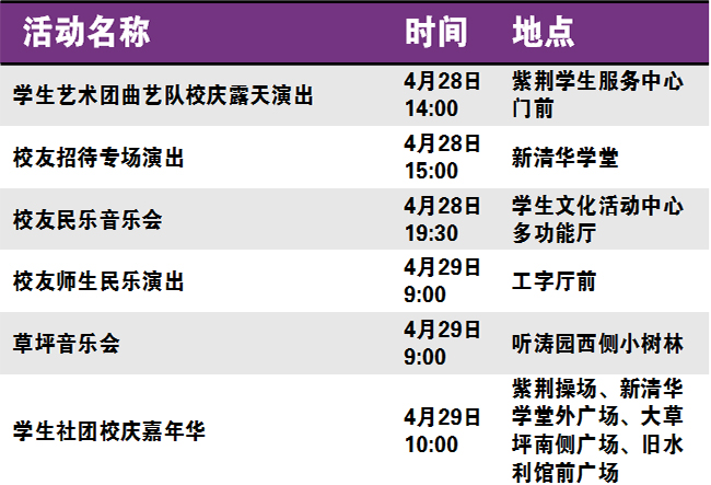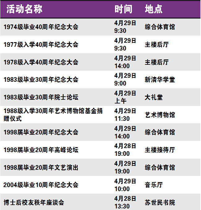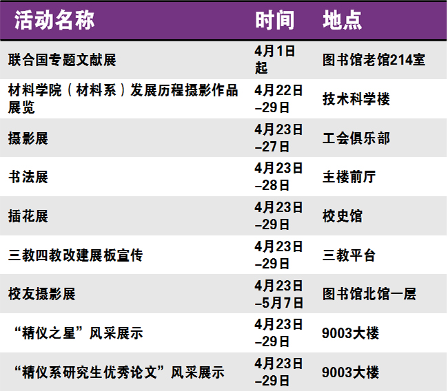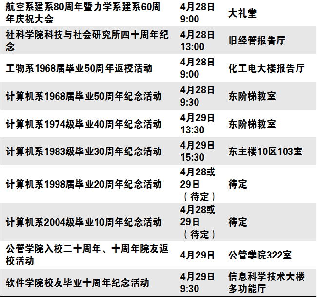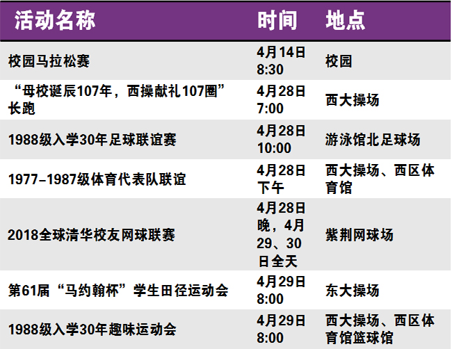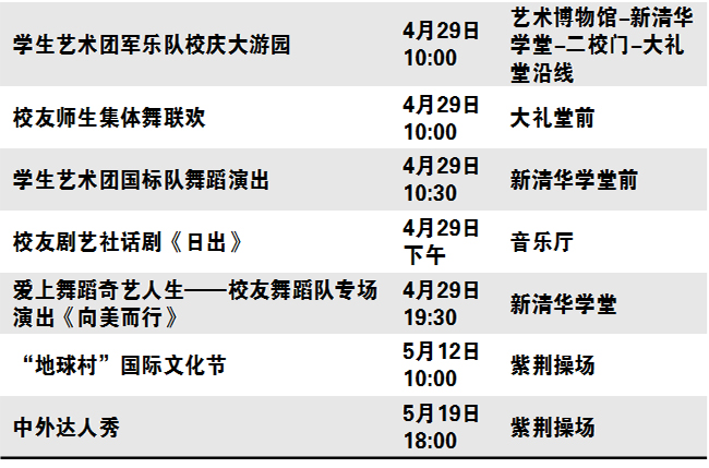 秩年、学术、体育、展览、校园开放、艺术、院系校友活动