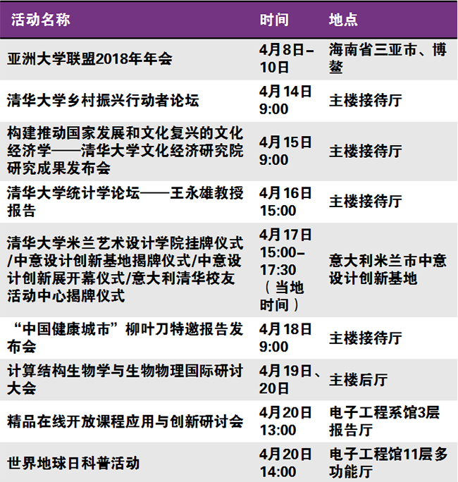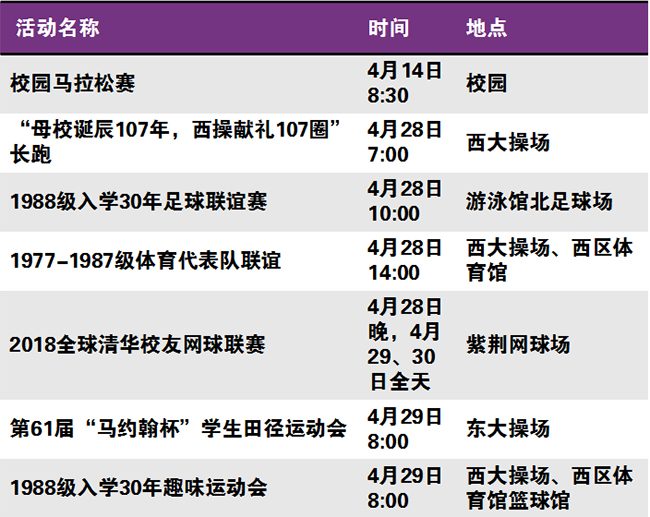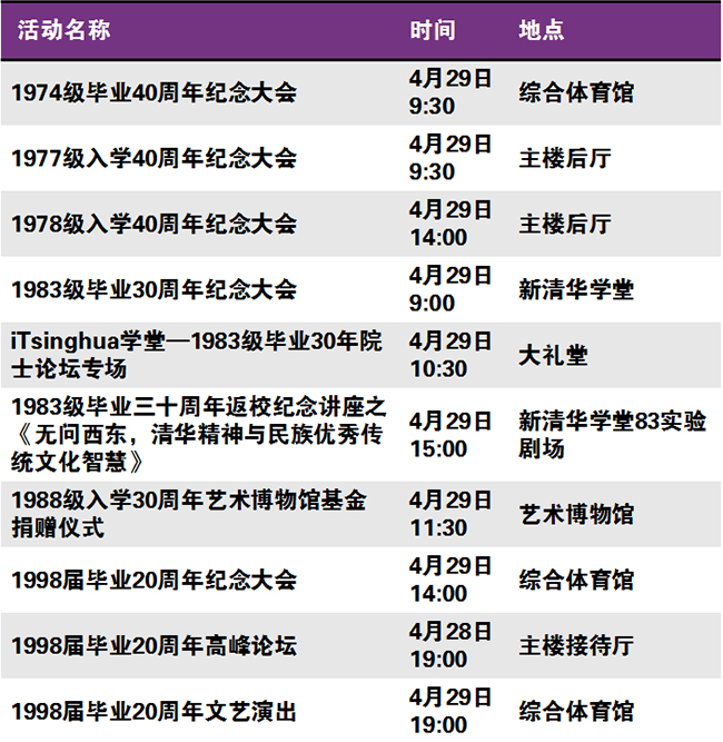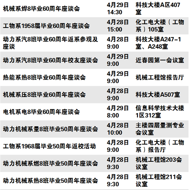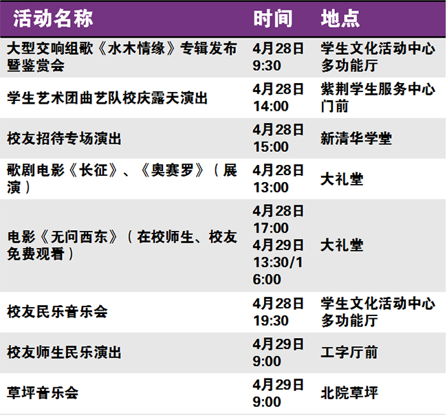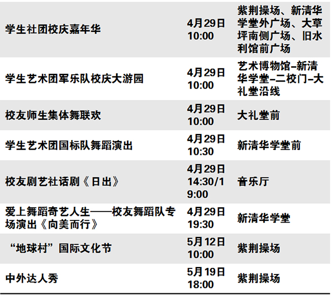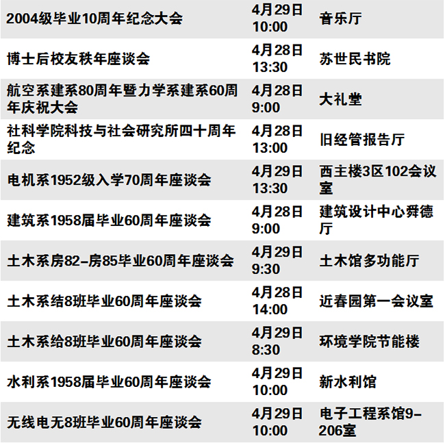 秩年、学术、体育、展览、校园开放、艺术、院系校友活动