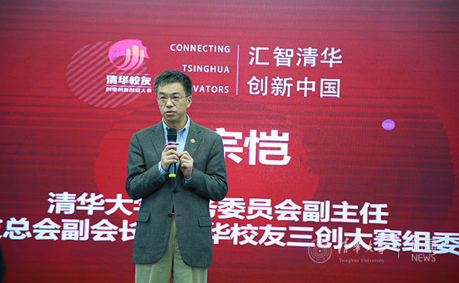 杨斌向出席颁奖典礼的嘉宾和创业团队表示欢迎,并欢迎大家回母校参加校庆活动。他说,作为清华人,任何时候都不要忘记清华精神源自于清华的出身,这种精神包涵“耻不如人”的起初,不管外部顺逆,都要毋忘在莒,清华最要讲志气;在当前世界与技术的大变局中,母校校歌中的“须自强”的提醒更值得反复回味,“自”这个字很重要,既可以是自己、自身,每个校友,每个个体,每个老师,也代表着我们的国家,代表我们每一个不同的行业。母校成立107周年,“清华正芳华,创新须自强”,希望大家为了国家,为了母校,也为校友,一起努力加油!他还特别感谢了三创大赛的全体对学校学生创新创业教育,以及校友创新创业工作的大力支持。