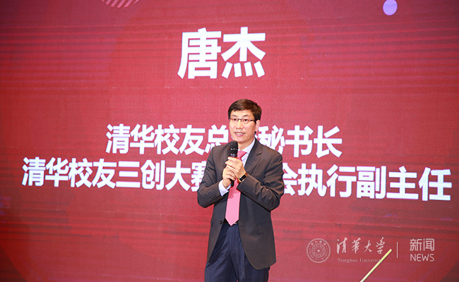 唐杰在讲话中讲到,今年的三创大赛有“三高”,一是校友参与的热情高,参赛的项目包括北美的50个,总计646个,参赛范围覆盖了全国;二是各地校友会承办的热情高,河南校友会主动申办中原赛区,带动了11个省区的三创工作,得到广大校友的积极响应;三是社会关注度高,15个领头投机构,80多个投资机构,30多个政府机构都给以关注和积极参与,还有400多位校友导师,众多社会主流媒体纷纷报道大赛盛况。