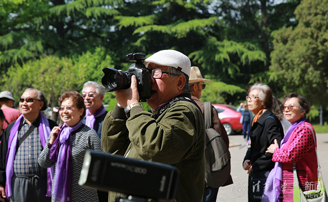 志愿者为老校友拍照