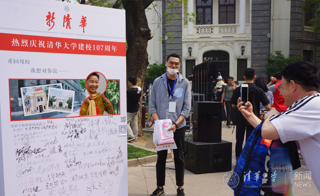 4月29清晨,远道而来的校友们在日晷前校报《新清华》头版展板上写下自己的名字,写下对母校的祝福,并纷纷拍照留念,留下一张107周年的难忘纪念。