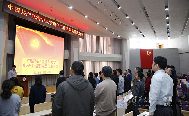 陈旭在电子系党员代表会议上讲话。记者 张宇