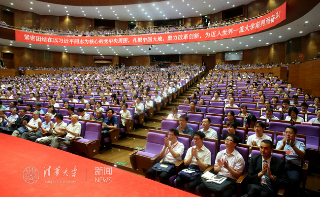 今天的新清华学堂里气氛庄严热烈,大会主席台正中悬挂由鲜艳的红旗簇拥着的中国共产党党徽,“紧密团结在以习近平同志为核心的党中央周围,扎根中国大地,聚力改革创新,为迈入世界一流大学前列而奋斗!”的标语悬挂在二楼眺台。上午9点,大会在庄严的国歌声中开幕,华体会娱乐平台党委副书记、校长邱勇主持会议。