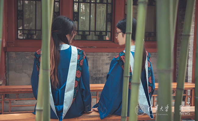 穿上学士服依然可以像童话里的公主一样荡秋千。