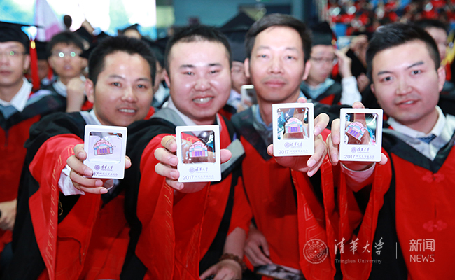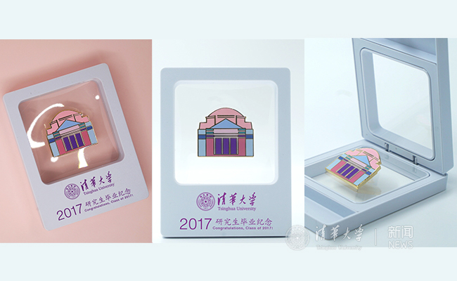 今年,每一名2017届研究生毕业生均获赠一枚毕业纪念徽。纪念徽为高度概括的清华大礼堂建筑形象。