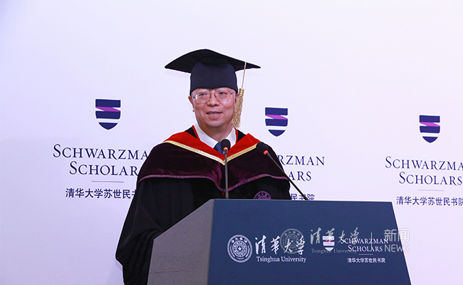 典礼上,邱勇校长全程用英文致辞。他说,“你们,苏世民书院的毕业生,代表着美好的未来;你们,书院的首届毕业生,为将来的同学树立了榜样。你们的毕业是一个里程碑,标志着苏世民项目取得了真正的成功。”邱勇引用沃尔特·惠特曼 “做世界的水手,奔赴所有的港口”和李白“长风破浪会有时,直挂云帆济沧海”的两句诗,希望书院毕业生们能秉持清华“行胜于言”的校风,从现在开始投身真正的实践,沟通中国与世界,努力成为未来的全球领导者。