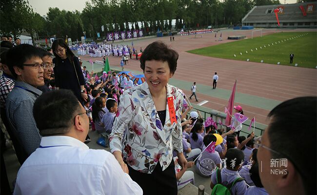 邱勇邀请中学校长代表参加运动会开幕式。贺施政 摄