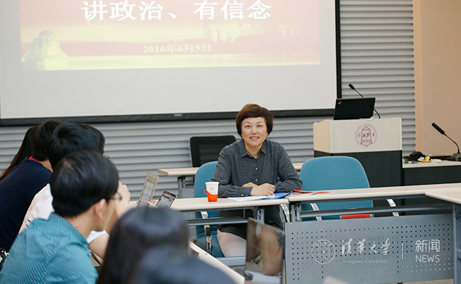 陈旭强调,党中央的要求就是最大的政治,国家的需要就是最大的政治;同学们要从身边的小事入手,发挥模范带头作用,“大事是政治,小事也是政治”。她为支部同学讲述了1978级校友、水利部副部长刘宁在汶川地震后为化解堰塞湖险情奋战153小时的感人事迹,分享了国庆60周年前夕清华师生苦练八天七夜、圆满完成紧急组建“毛泽东思想”标语方阵任务的“奇迹”,与大家一起重温了习近平总书记用48个字概括的党的新闻舆论工作的职责和使命。“怎么做好‘讲政治、有信念’的新时期合格党员?相信你们可以给出更好的答案。”陈旭的亲切讲解和热情鼓励,赢得了在场同学的掌声和共鸣。