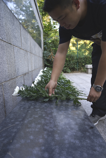 图为祭奠后的“祖国儿女,清华英烈”纪念碑。