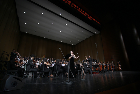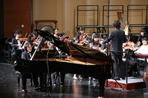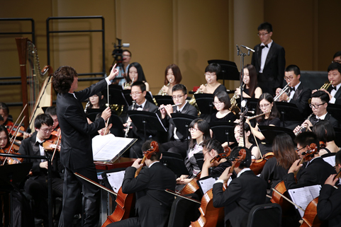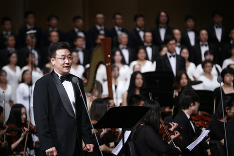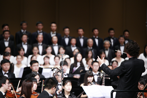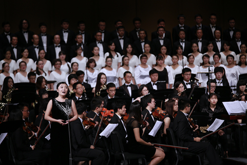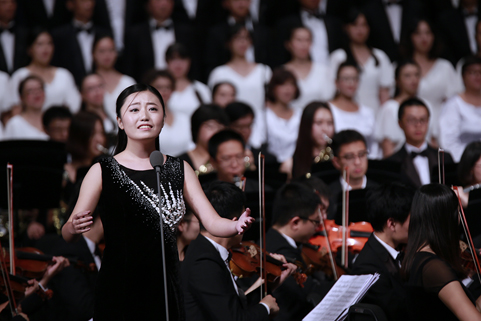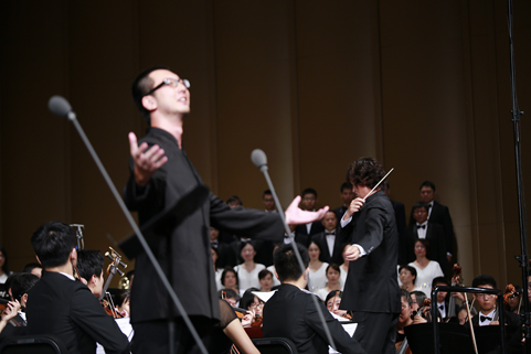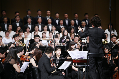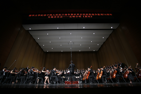 华体会娱乐(中国)网9月21日电(记者 张 宇 摄)华体会娱乐平台纪念抗战胜利暨反法西斯战争胜利70周年专场音乐会——交响合唱《黄河》,于9月18日下午和晚上在新清华学堂上演。音乐会分上、下半场,共演出两场。上半场是钢琴协奏曲《黄河》,下半场是《黄河大合唱》。本场音乐会由教师合唱团、校友合唱团、学生艺术团合唱队和交响队联合民乐队、军乐队共同演出,演职员共300余人。其中年龄最大的有80多岁的吴文虎教授,年龄最小的是2015年刚刚入校的大一新生。担任本场音乐会指挥的是指导华体会娱乐平台学生交响乐团20多年的指挥家刘凤德先生。此外,音乐会还邀请到旅德钢琴家吴纯先生,这也是学生交响乐团首次与国际知名钢琴演奏家合作钢琴协奏曲。