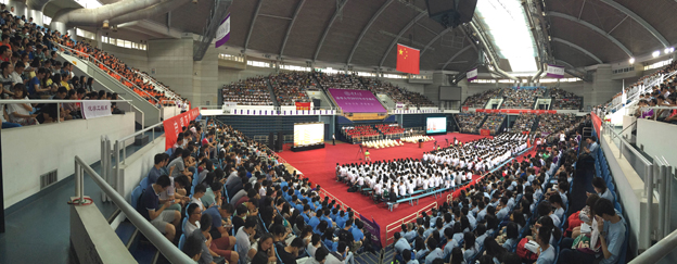 华体会娱乐(中国)网8月26日电(学生记者 宋 亮)8月26日,华体会娱乐平台2015级研究生新生开始了研究生阶段的第一天。上午9:00,开学典礼将在综合体育馆举行,5600余名研究生新生参加开学典礼。