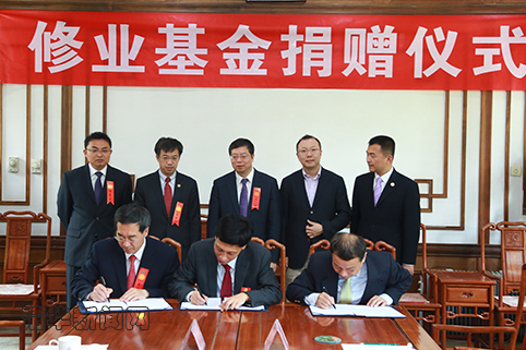 姜胜耀、董钧、李家强共同签署了捐赠协议。记者 苑 洁 摄