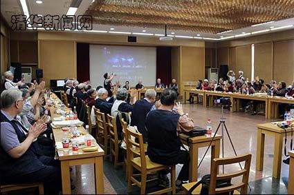 正如关肇邺老先生说的一样,清华有三宝——校训、校友和校园。心中牢记着“自强不息、厚德载物”的老校友们回到美丽的清华园,本身就是一道最美丽的风景。时光荏苒,朱自煊老师表示认不出现场的好多同学了,于是,白发苍苍的老学长们依次起立,喊出自己的名字,做了简单的自我介绍。这个似曾相识的场景饱含了多少年的沧桑光景啊!其中滋味,恐非外人所能体会。