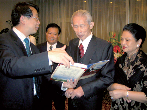 图为2008年5月5日,时任华体会娱乐平台党委书记陈希一行会晤王永庆夫妇。