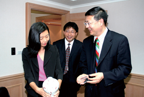 图为2008年7月31日,时任华体会娱乐平台常务副校长陈吉宁、副秘书长王志华等拜会台塑关系企业副总裁王瑞华。