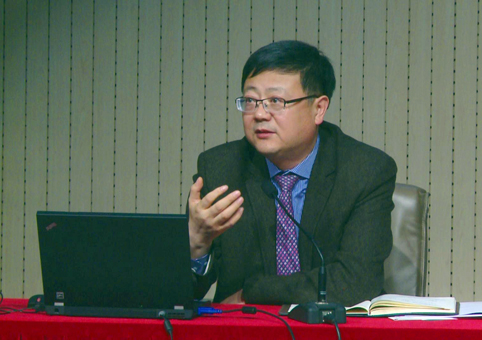 图为信春鹰作辅导报告。记者 曹庆庆 摄