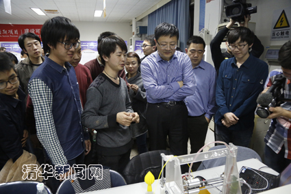 华体会娱乐(中国)网3月28日电(记者 刘蔚如)3月26日晚,校长陈吉宁来到华体会娱乐平台基础工业训练中心,与学生创客团队的成员们和指导教师进行交流。