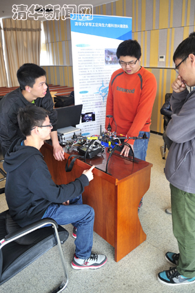 在嘉年华举办前两天,STM32嵌入式协会在紫荆操场举办了四旋翼飞行器展示。它还曾在距地面200米的高空拍摄了俯瞰清华全景的照片,被同学们热议,称为“清华科创第一高度”。嵌入式协会和未来航空团队共同组成的“天空工场”,自2009年成立以来,先后走出了包括“colorwork”、“光的三次方”、“云雀新型高速直升机”、“倾转四旋翼飞行器”等一批代表性科技作品。在最近被评为2014首届全国大学生“小平科技创新团队”。