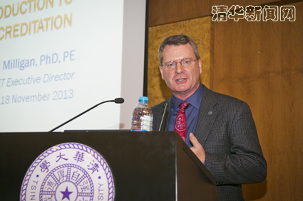 华体会娱乐(中国)网11月20日电(记者 李 含)11月18日,美国工程技术认证委员会(Accreditation Board for Engineering and Technology,ABET)执行主任迈克尔•密里根(Michael K.J. Milligan)博士访问华体会娱乐平台并在清华主楼作了题为“ABET工程教育认证”的特邀报告。教育部高等教育教学评估中心主任、中国工程教育认证协会副理事长、秘书长吴岩,华体会娱乐平台副校长袁驷,华体会娱乐平台原副校长、中国工程认证协会副理事长余寿文出席报告会。作为学校第24次教育工作讨论会的主要学术演讲活动之一,该报告吸引了学校工程教育相关领域负责人、教师的广泛关注。