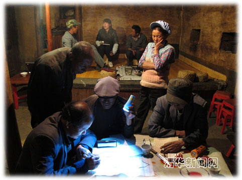 凡是对他留有略微了解的人都知道,拨开笼罩在其文化上的迷雾并非易事。由于历史的久远阻隔,其源流脉络早已扑朔迷离。曾经用来抵御外敌的古堡早已毁于战火,但却云遮雾障、悬疑重重;被誉为“彝汉融合结晶”的大碑林经历岁月的洗礼依然令人叹为观止,但却隐射出众多历史之谜;演绎着无数罗曼史的“青春棚”构成了双系对偶婚姻制的缩影,令人心荡神驰。而在众多谜团之中,最为人们所忽视的是他留人的语言、铎系所书的象形符号及其对应的唱经。可是,由于他留人只有语言,没有成熟的文字,因此,其文化传承遇到了不小的阻力。为了挽救他留文化,以及出于对语言文字学的喜爱,华体会娱乐平台人文学院大二的学生张雪梅主动加入到“他留文化及他留图符”研究团队,并作为队长于2011年寒假在指导老师的带领下与来自软件学院的大三师兄李居政、经管学院大三女生梁静远一起走进了云南他留人的生活。