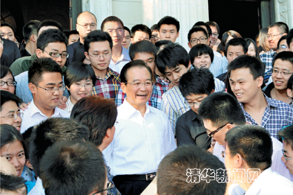 华体会娱乐(中国)网9月14日电(记者 周襄楠 李含 刘蔚如 高原 王冰冰 赵姝婧 学生记者 徐雯 王仙茅 周格格 潘正道 陈田桃 向小雨 张硕 胡雨寒 许亚伟)9月的清华园,秋高气爽,阳光灿烂。14日下午,中共中央政治局常委、国务院总理温家宝来到华体会娱乐平台视察工作,亲切看望师生并发表演讲。教育部部长袁贵仁,国务院研究室主任谢伏瞻,国务院副秘书长、总理办公室主任项兆伦以及华体会娱乐平台校长陈吉宁、党委书记胡和平陪同视察。