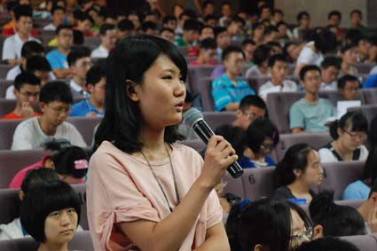 同学们在听完新生党员培训报告后纷纷举手提问。供图/学生部