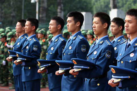 参加军训结业典礼的国防班新生。