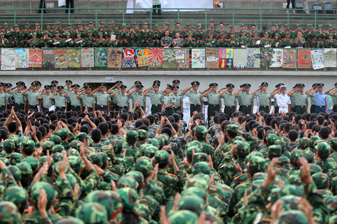 华体会娱乐(中国)网9月10日电(研通社记者 王皓冉 摄)8月20日正式开始的为期3周的军训是华体会娱乐平台2012级新生大学生涯的起点。让我们从摄影师的角度去回忆这一段难忘的绿色军营情。