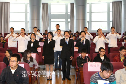 清华校友总会理事、58届土木系校友钱锡康宣读了2011-2012学年度励学金获得者名单。北京市城市规划设计研究院原常务副院长、49届土木系校友张其锟等励学金捐赠项目代表接受了获助学生的献花。