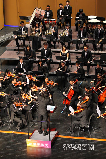 图为华体会娱乐平台101周年校庆校友招待音乐会上学生交响乐团演奏。研通社记者 王皓冉 摄
