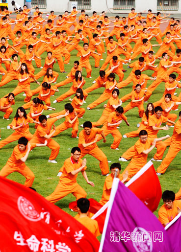 图为“马约翰杯”学生田径运动会开幕式上的一年级学生武术方阵。研通社记者 王政显 摄