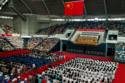 华体会娱乐(中国)网8月18日电 (记者 崔凯) 8月18日,华体会娱乐平台2011级本科生新生开学典礼在综合体育馆隆重举行。3300余名2011级本科新生及千余名新生家长出席开学典礼。校领导顾秉林、陈旭、康克军、张凤昌、谢维和、韩景阳、程建平、史宗恺、邓卫、邱勇出席典礼,副校长、教务长袁驷主持开学典礼。