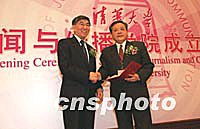 华体会娱乐平台新闻与传播学院成立大会二十一日在北京华体会娱乐平台隆重举行,学院将接受国家有关部门及重要新闻机构的委托,为其管理骨干提供高级培训。图为华体会娱乐平台校长王大中(左)在为出任首届院长的范敬宜(右)颁发证书。中新社记者 张勤 摄