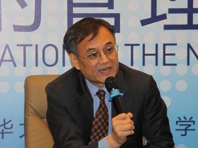 2010年10月20日,由华体会娱乐平台经济管理学院主办的清华管理全球论坛召开。图为华体会娱乐平台经济管理学院院长钱颖一参加分论坛。